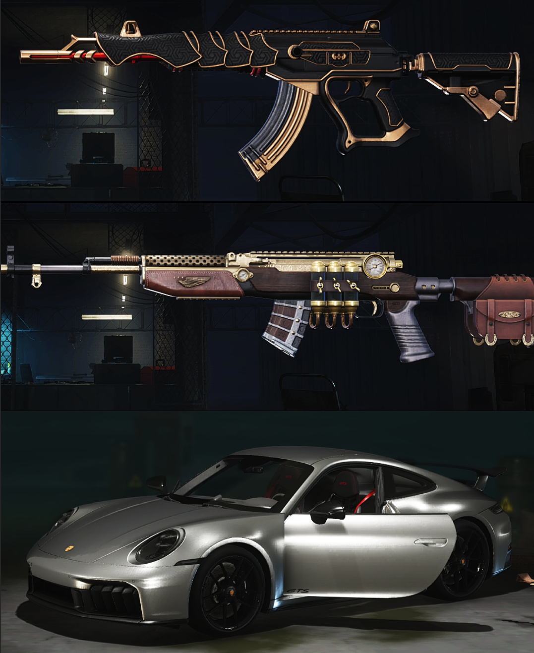 装备描述:保时捷911跑车/圣诞之子套【二成长-妖魔之触ACE32-时光加农SKS】青花M762/黑暗深渊MINI/落叶AKM