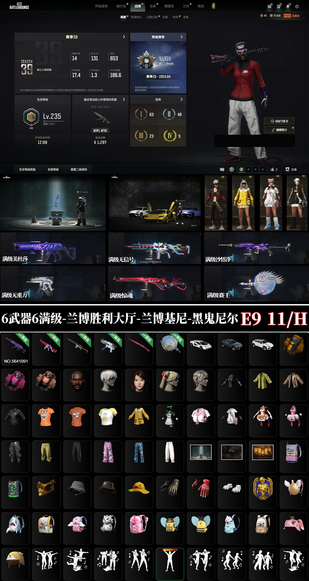 6神器6满⭐无信号M416⑩美杜莎M762⑩沙悟净⑩无重力⑩午夜⑩兰博基尼柏林可排位火麒麟AUG