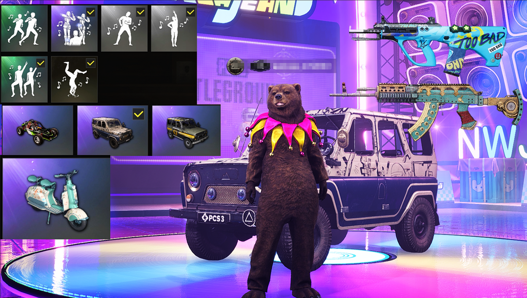 装备描述:炫酷女团大厅【二成长型-权志龙AUG-黑暗深渊M762】黄东南亚/蟒蛇花园夹克/小叮当裤/主播手套/拉风龙裤/柠檬汁M4/