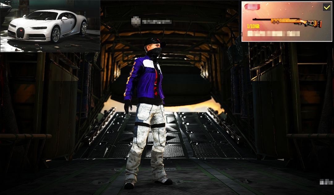 装备描述:二级密码123456/可排位/布加迪联名跑车【成长武器-小夜曲M24】保时捷越野套装/铁血警官套/双马尾/帝皇套/麻辣小龙虾套/