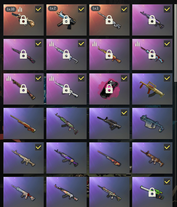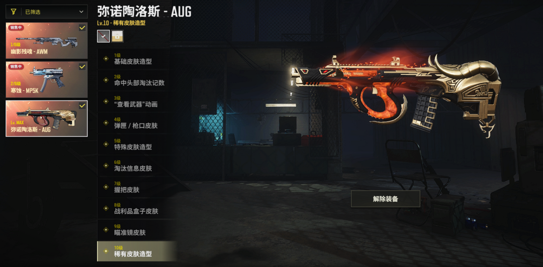 ⑩级牛头AUG✅寒蚀MP5K✅幽影AWM✅白运动✅白战神✅黑鬼金面