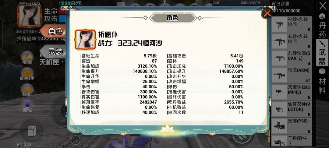 吃丹修仙,11轮回,恒河沙,250w倍率(禁止分解)