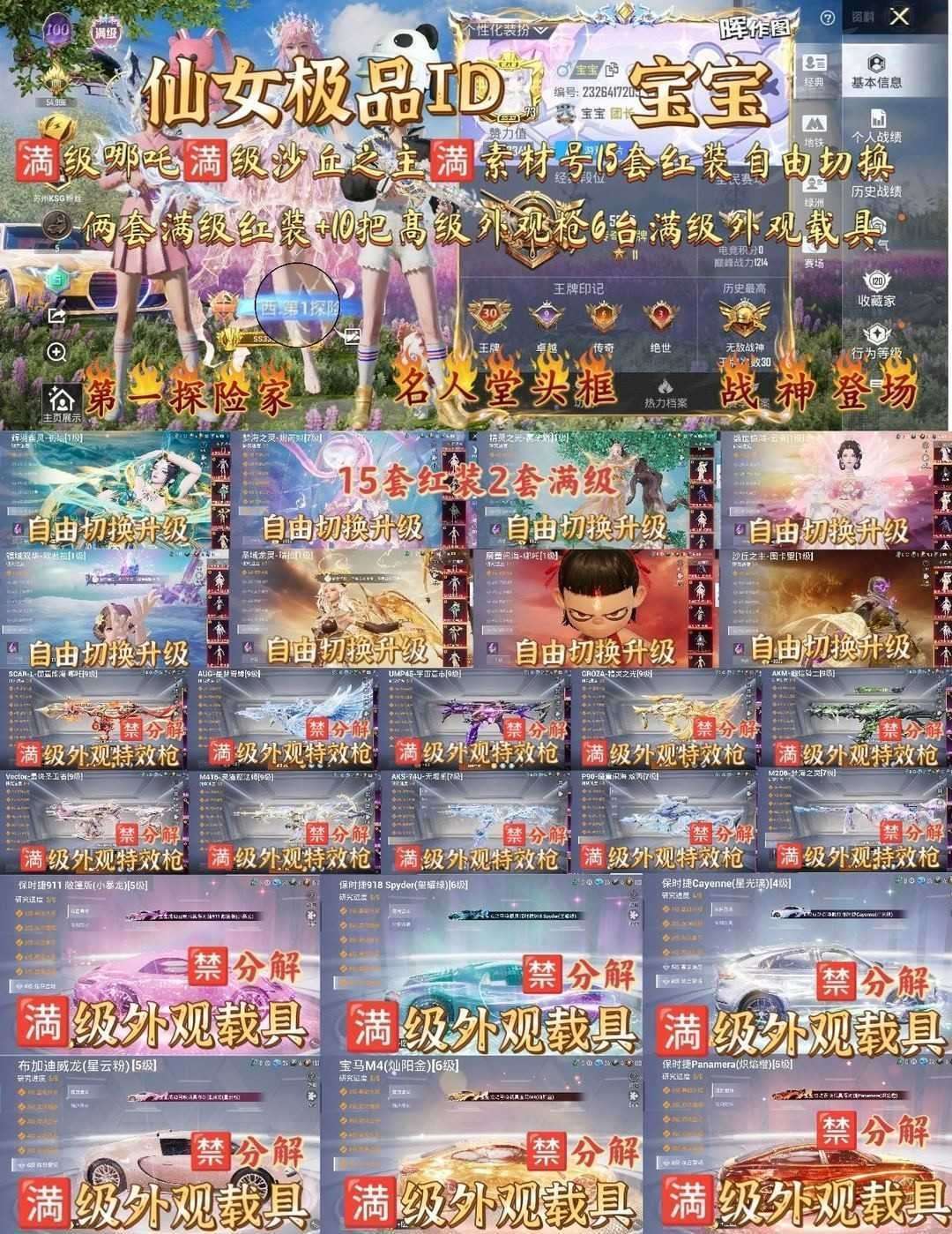 天花板ID宝宝❤️第一探险家名人堂框❤️15红两套满级同时登场❤️全系满级保时捷小暴龙❤️9级AK